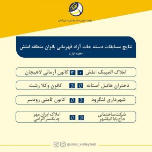 پایگاه خبری تحلیلی غدیر خبر گزارش می دهد؛ طبق اعلام مدیر تیمهای والیبال باشگاه شهرداری لنگرود و از سری مسابقات والیبال دسته جات آزاد قهرمانی بانوان استان گیلان، تیم والیبال بانوان شهرداری لنگرود موفق شد در هفته اول این رقابت ها و طی یک دیدار تماشایی، تیم بانوان کانون ثامنی رودسر را با نتیجه قاطع ۳ – ۰ مغلوب نماید.
